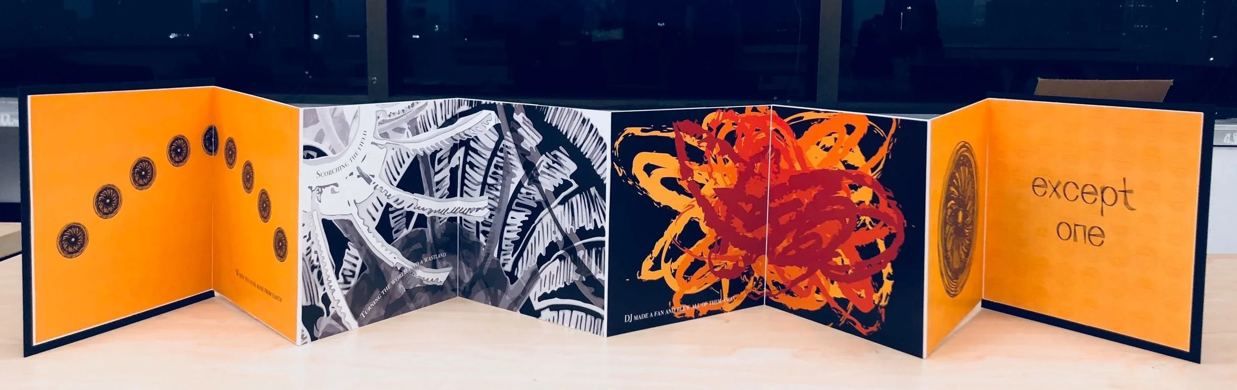 During 2018 summer, I was in Boston. It was really hot and all I got was a desk fan. Thus I made an accordion book praising the heroic fan.
